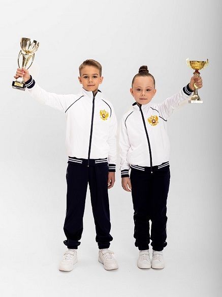 Если вы ищете спортивный костюм для девочки или мальчика, который сочетает в себе премиум качество и стильный дизайн, то этот костюм идеально подойдет. Костюм из спортивного трикотажа с вышивкой Герб и манжетами. Несравненным преимуществом данной модели является материал - брушед. Куртка с центальной застежкой-молнией,воротник стойка. Куртка и брюки имеют по два действующих кармана. Модель разработана по специальным лекалам с учетом всех анатомических особенностей. Костюм спортивный на молнии подходит для мальчика и для девочки. Имеет широкий размерный ряд,что делает его идеальным выбором как для детей, так и для девушек и юношей подросткового возраста.Он идеален для занятий такими видами спорта как художественная и спортивная гимнастика, фигурное катание, баскетбол, воздушная гимнастика, легкая атлетика, футбол, волейбол, бокс, акробатика и другие виды спорта.