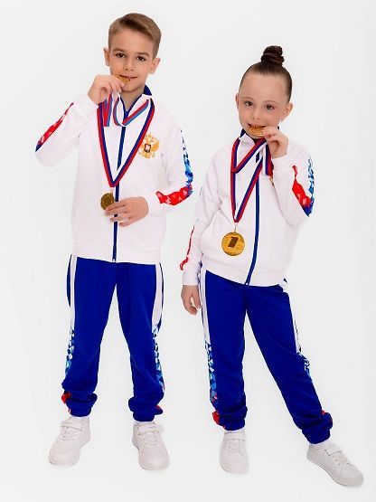Если вы ищете спортивный костюм для девочки или мальчика, который сочетает в себе премиум качество и стильный дизайн, то этот костюм идеально подойдет. Костюм из спортивного трикотажа с сублимационной печатью орнамента в стиле триколор. Особенностью сублимационной печати является: экологичность технологии; высокое качество изображений; устойчивость к выцветанию. Несравненным преимуществом данной модели является материал - брушед. Куртка с центальной застежкой-молнией,воротник стойка. Куртка и брюки имеют по два действующих кармана. Модель разработана по специальным лекалам с учетом всех анатомических особенностей. Костюм спортивный на молнии подходит для мальчика и для девочки. Имеет широкий размерный ряд,что делает его идеальным выбором как для детей, так и для девушек и юношей подросткового возраста.Он идеален для занятий такими видами спорта как художественная и спортивная гимнастика, фигурное катание, баскетбол, воздушная гимнастика, легкая атлетика, футбол, волейбол, бокс, акробатика и другие виды спорта