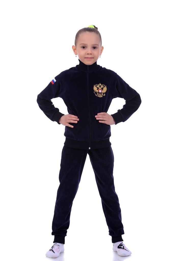 Купить одежду для гимнастики в Новосибирске Спортивный костюм из велюра из коллекции "Gold" с вышивкой "Герб" за 4 000 руб.