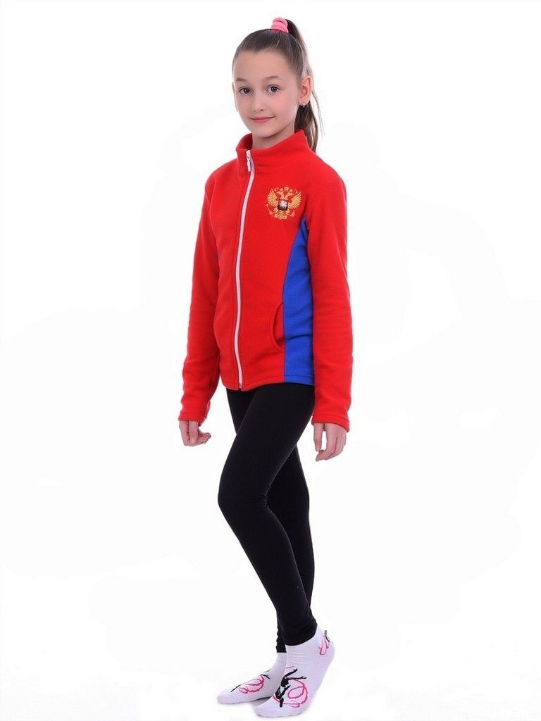 Кофта из флиса с вышивкой Герба Российской Федерации. Она использовалась и используется  фигуристами, гимнастами в холодных помещениях, танцорами лыжниками, туристами и многими другими как «второй» теплый слой. Кофта служит идеальным решением спортивной экипировки.