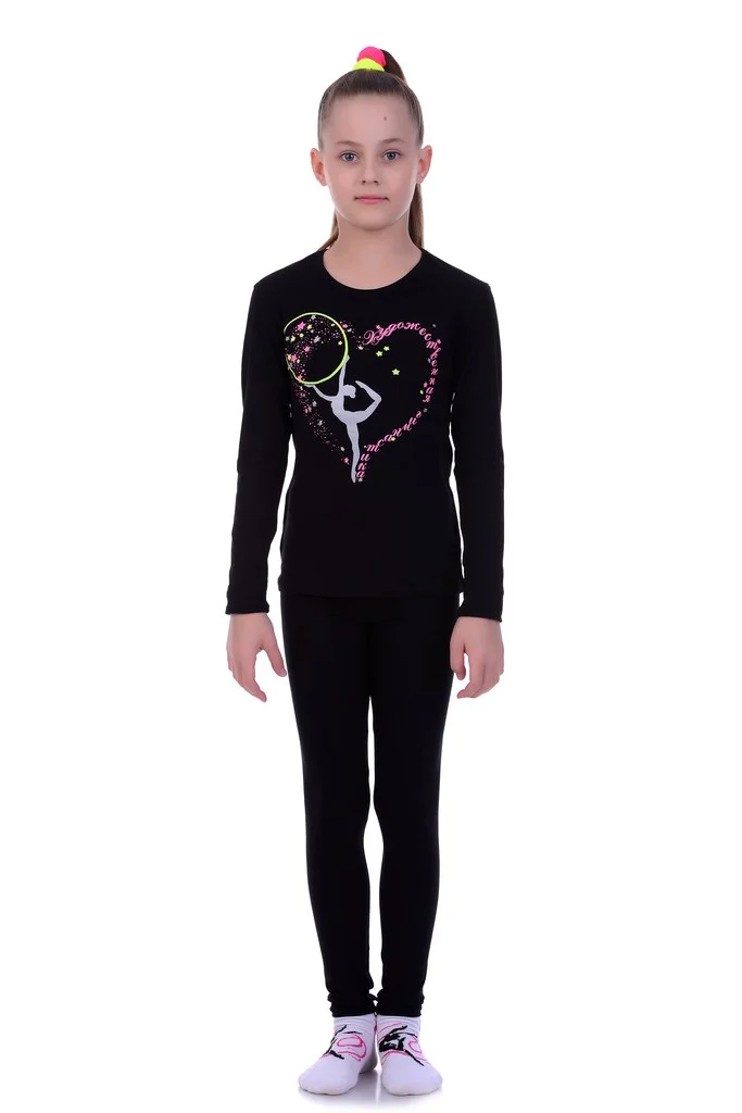Купить одежду для гимнастики в Новосибирске Лонгслив-футболка с длинным рукавом с принтом "Сердце" за 600 руб.