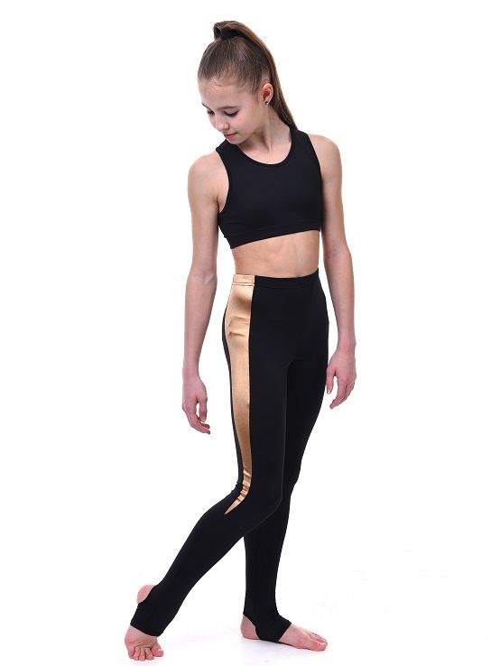 Купить одежду для гимнастики в Новосибирске Лосины со вставками из коллекции "Gold" с прорезью под пятку за 600 руб.